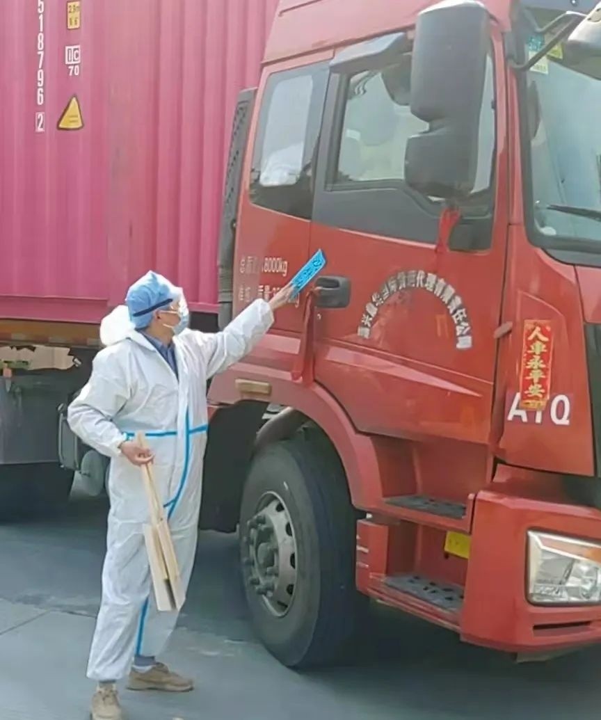 凡進(jìn)入廠區(qū)的集裝箱及來(lái)廠裝貨車輛,都要求掃“嘉行碼”及行程碼查看(嘉興市外來(lái)返斜橋的進(jìn)行登記),并測(cè)體溫登記,駕駛證、車牌號(hào)碼、身份證號(hào)碼、進(jìn)廠時(shí)間、離廠時(shí)間等都要求填寫完整記錄。(由于貨車封閉管理所有駕駛員信息由單證部反饋管理部,由保安核對(duì)統(tǒng)一填寫登記,對(duì)嘉興市市外車輛進(jìn)行車門封條張貼)