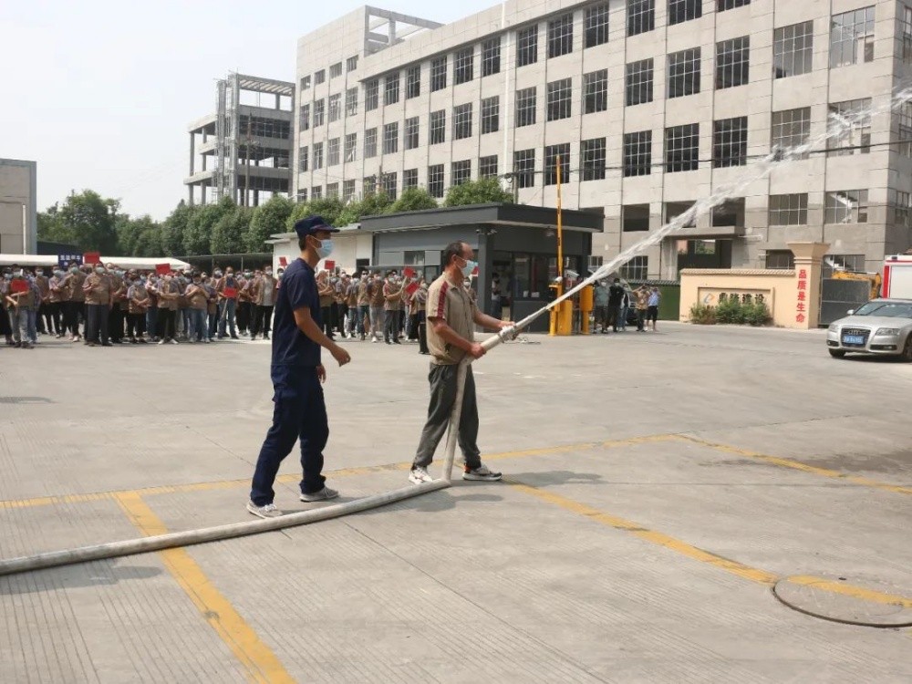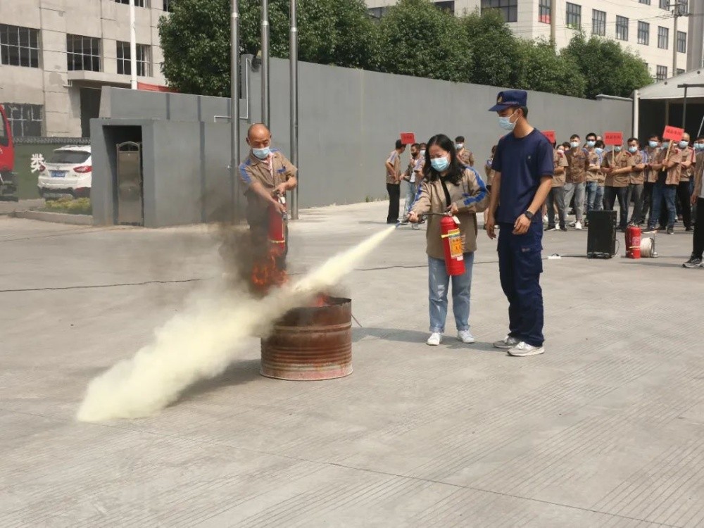 最后,組織各個部門員工代表用干粉滅火器進行滅火演練,及水帶連接消火栓出水演練,使員工進一步正確掌握滅火要領,快速撲滅著火物。