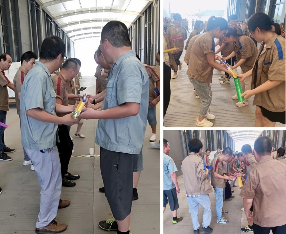 本次比賽共有10支隊伍參賽,100名員工報名參加。比賽前各部門負責人10個人組成的示范組,親切、耐心地為各組團隊講解規則和傳授技巧,并以標準、準確有力展示給大家。