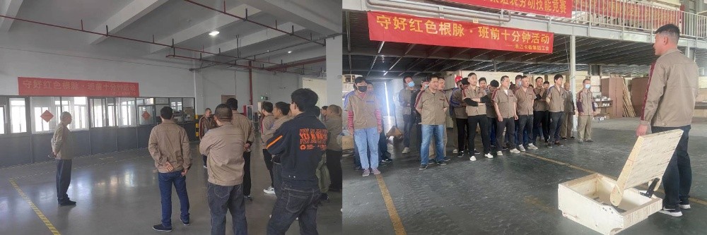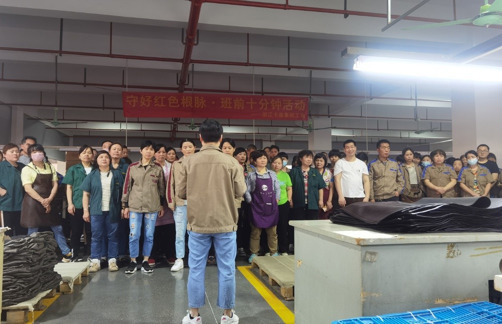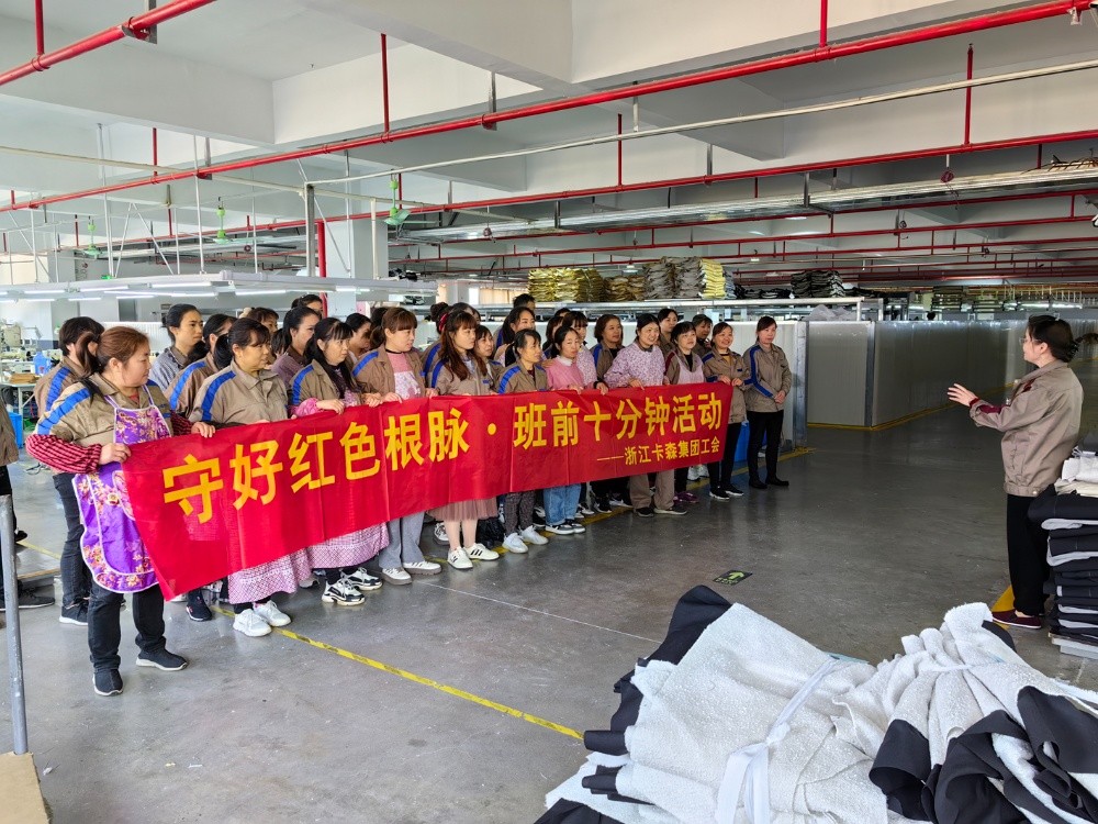 近段時(shí)間以來(lái),卡森集團(tuán)工會(huì)根據(jù)市、鎮(zhèn)總工會(huì)“守好紅色根脈·班前十分鐘活動(dòng)”的工作部署,在集團(tuán)黨委的組織帶領(lǐng)下,號(hào)召各子公司全面興起“班前十分鐘”活動(dòng),為把黨的思想精神、奮斗目標(biāo)和方針政策傳達(dá)貫徹到基層員工心中,鞏固夯實(shí)共同富裕的思想基礎(chǔ),奮力打造員工精神共富的品質(zhì)企業(yè)。