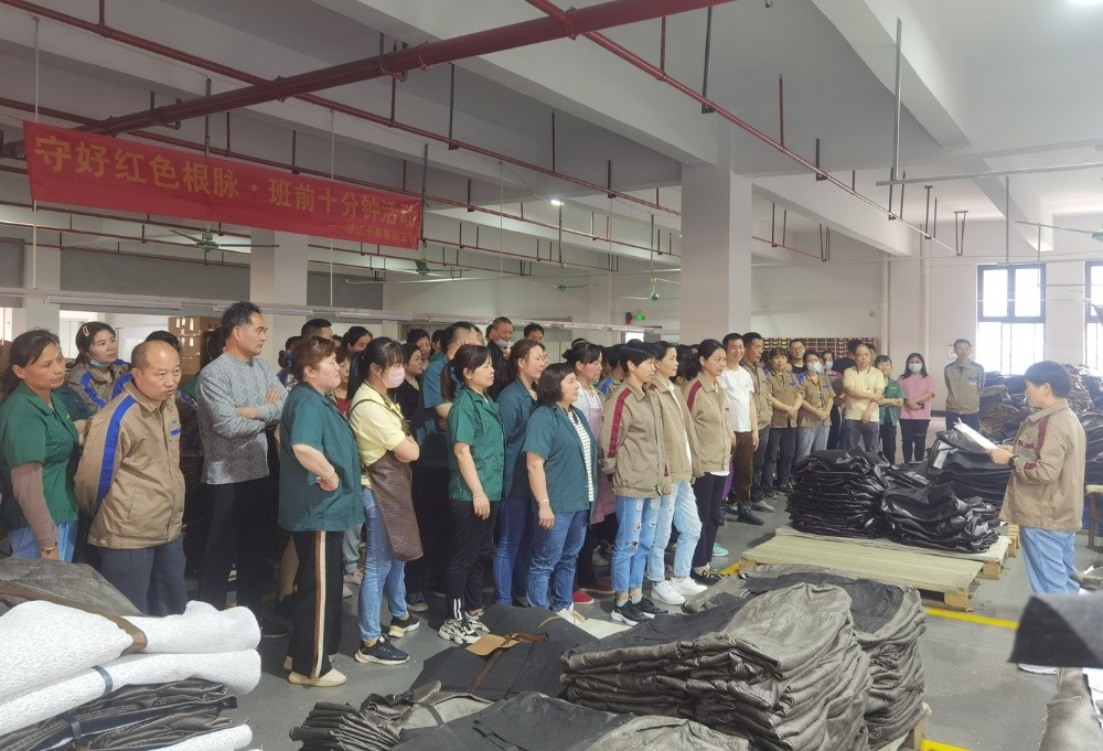 4月8日剛上班,卡雷諾公司縫紉車間組織開展班前會(huì),把黨的二十大精神、全國(guó)兩會(huì)精神等內(nèi)容簡(jiǎn)要宣傳貫徹到車間全體員工中,讓基層員工了解國(guó)家時(shí)政,把握發(fā)展大局;同時(shí)圍繞近期工作,對(duì)員工開展安全生產(chǎn)、產(chǎn)品質(zhì)量、反詐宣傳等;鼓勵(lì)員工專研技能提升,做新時(shí)代工匠。