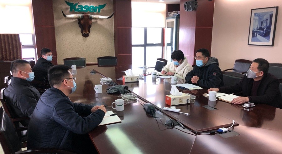 面對(duì)當(dāng)前疫情非常時(shí)期,2月10日下午,海寧市委書記朱建軍、市委辦主任陳中權(quán)等一行三人來到卡森集團(tuán)總部調(diào)研指導(dǎo)疫情防控工作及企業(yè)復(fù)工準(zhǔn)備情況。集團(tuán)副總裁張明發(fā)、周小紅、王柏良作了相關(guān)情況的匯報(bào)。