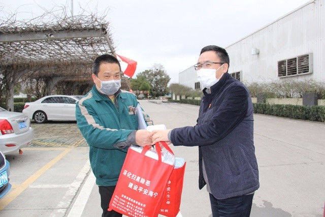 當前,抗擊新冠肺炎疫情正處于關鍵時刻,各家企業陸續迎來復工復產。2月15日,斜橋鎮黨委書記洪國清和黨委委員、副鎮長潘曉國專程到我集團股份二區工廠慰問調研,了解企業的開復工情況和碰到的一些問題,送上了1000只醫用口罩和2把測溫儀。